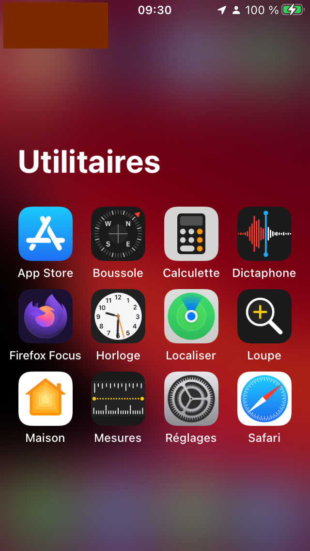 Maintenant, j’ouvre « Utilitaires » en le touchant sur mon iPhone : 12 apps.
