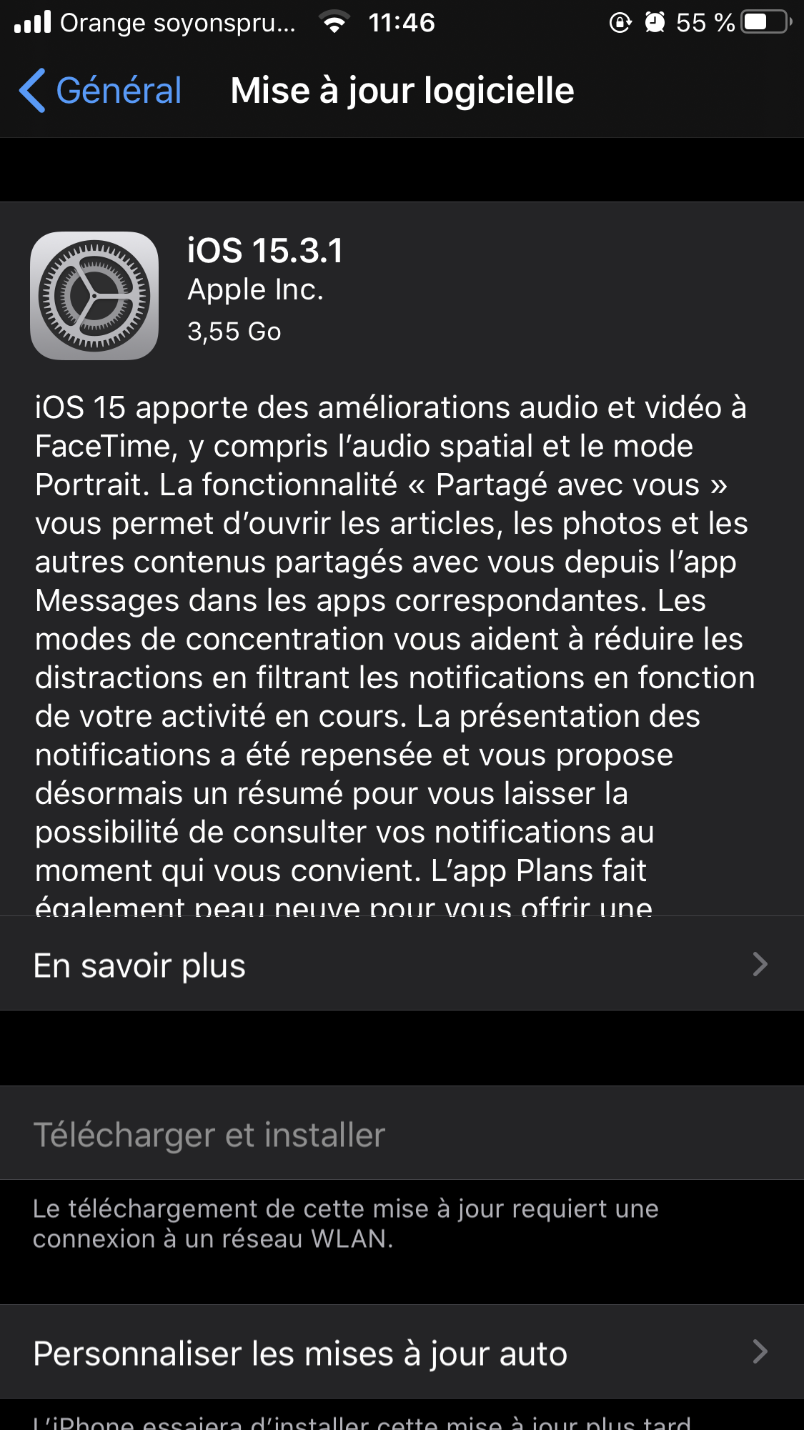 Je n’arrive pas à faire la mise à jour iPhone