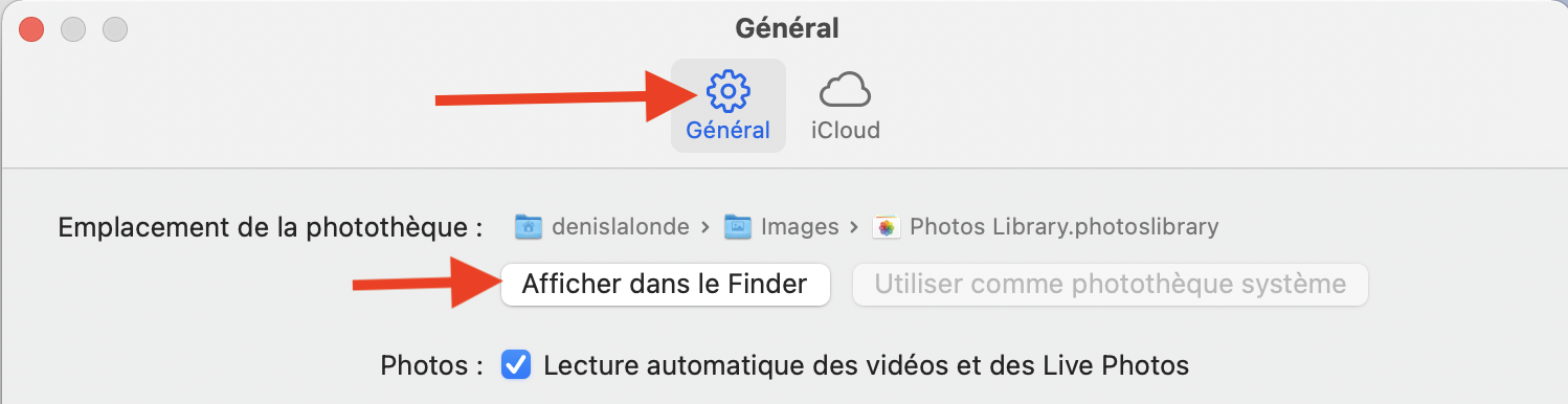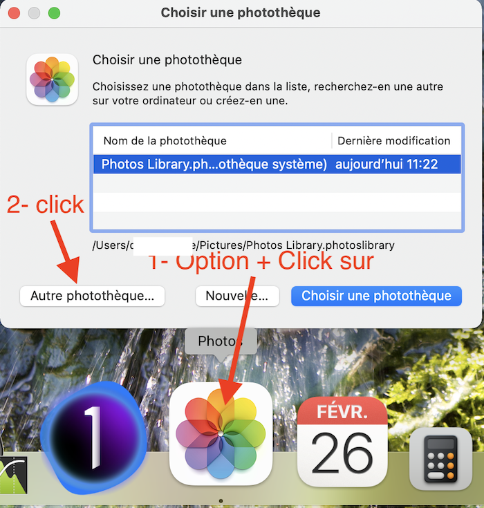 Par la suite tu utilise le raccourcie suivant pour te permettre de choisir la location de ta photothèque (copier sur le disque dur externe)