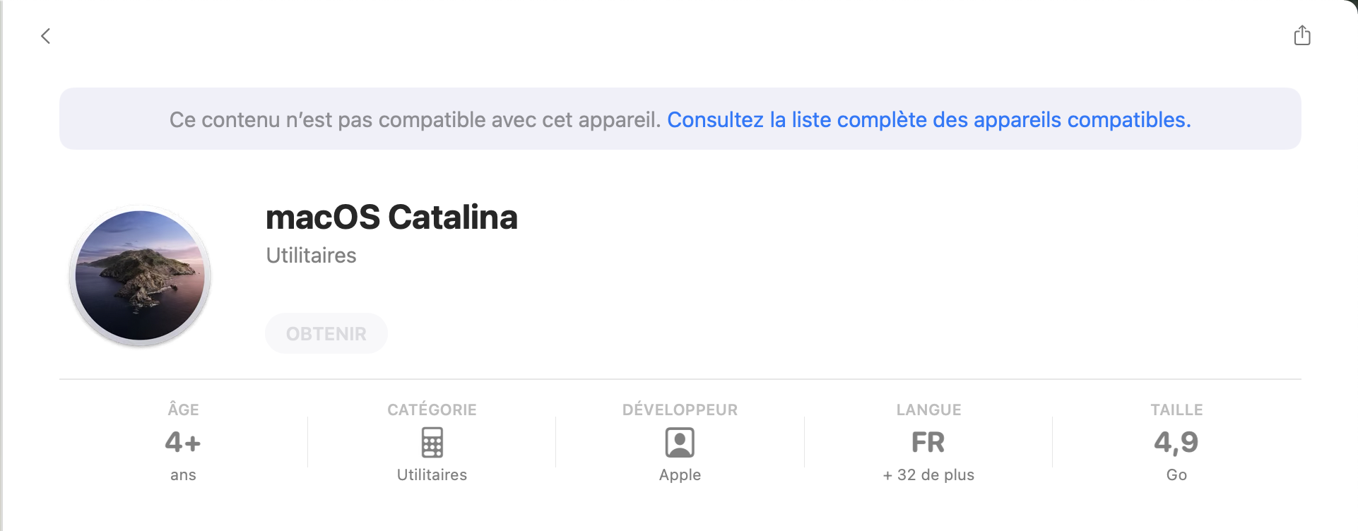 Bonjour, j'ai un souci pour créer une clef bootable de macos catalina. En effet le seul mac fonctionnelle que j'ai a m'a disposition est un macbook pro m1 pro est il est impossible de télécharger une version antérieure de macos existe il une solution ?
