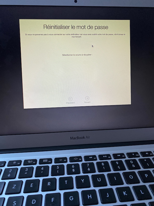 mon macbook air est bloqué sur la page pour réinitialiser le mdp et il n’y a aucune instruction qui s’affiche