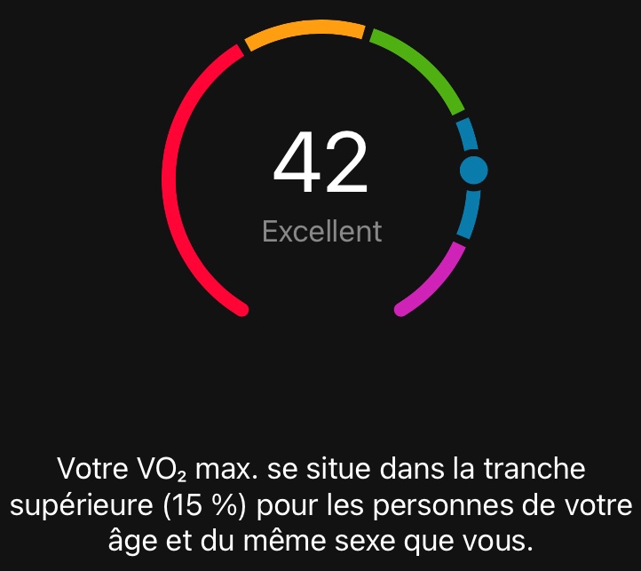 Même si ta question est en rapport avec la VO2 max, j'ai trouvé cette mention en jetant un œil sur le document Surveiller votre fréquence cardiaque avec l’Apple Watch :