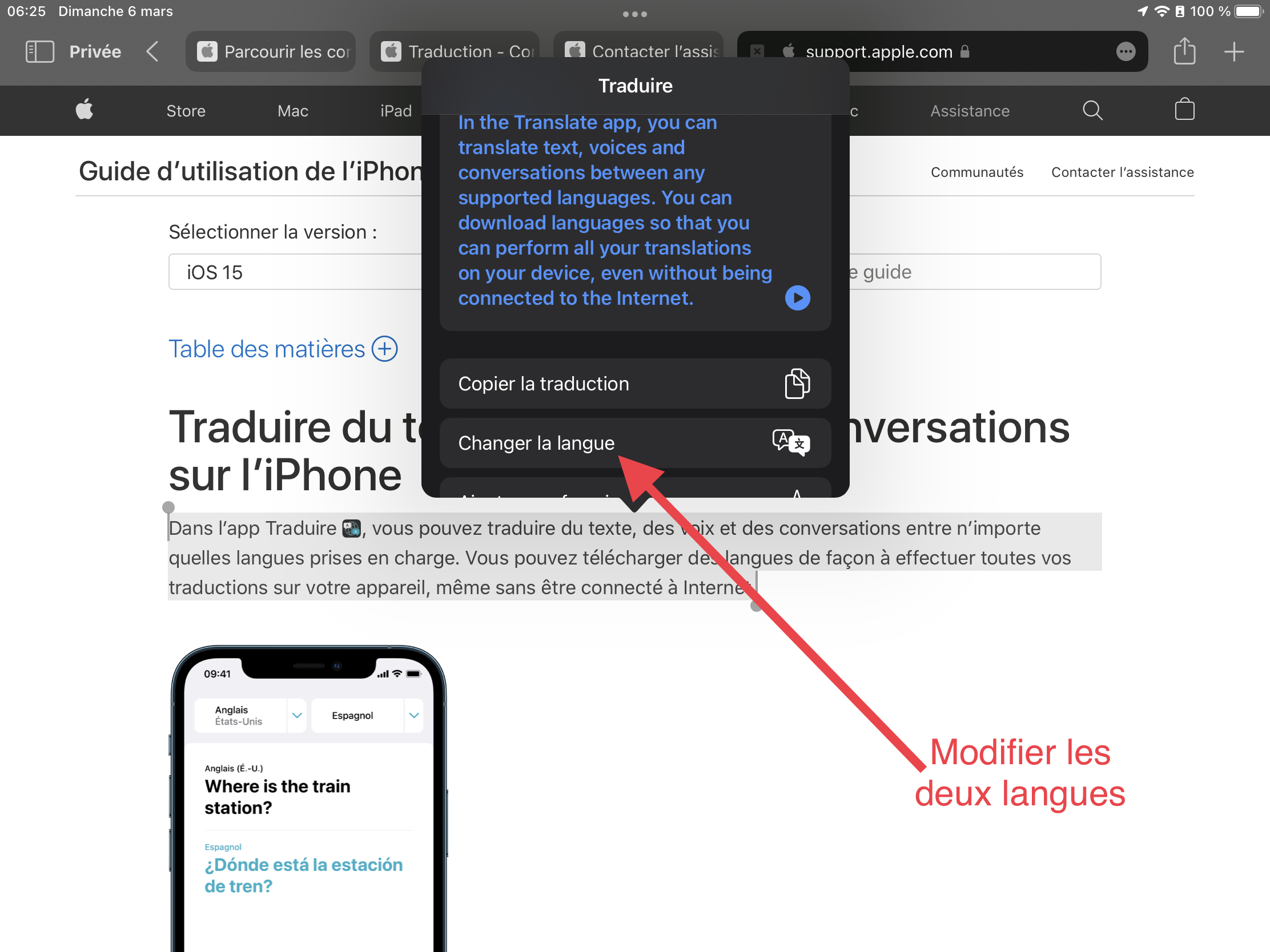 Voulant apprendre l anglais, j ai changé mon iPhone en language english , mais quand je veux traduire un texte de l anglais en français ça fonctionne pas