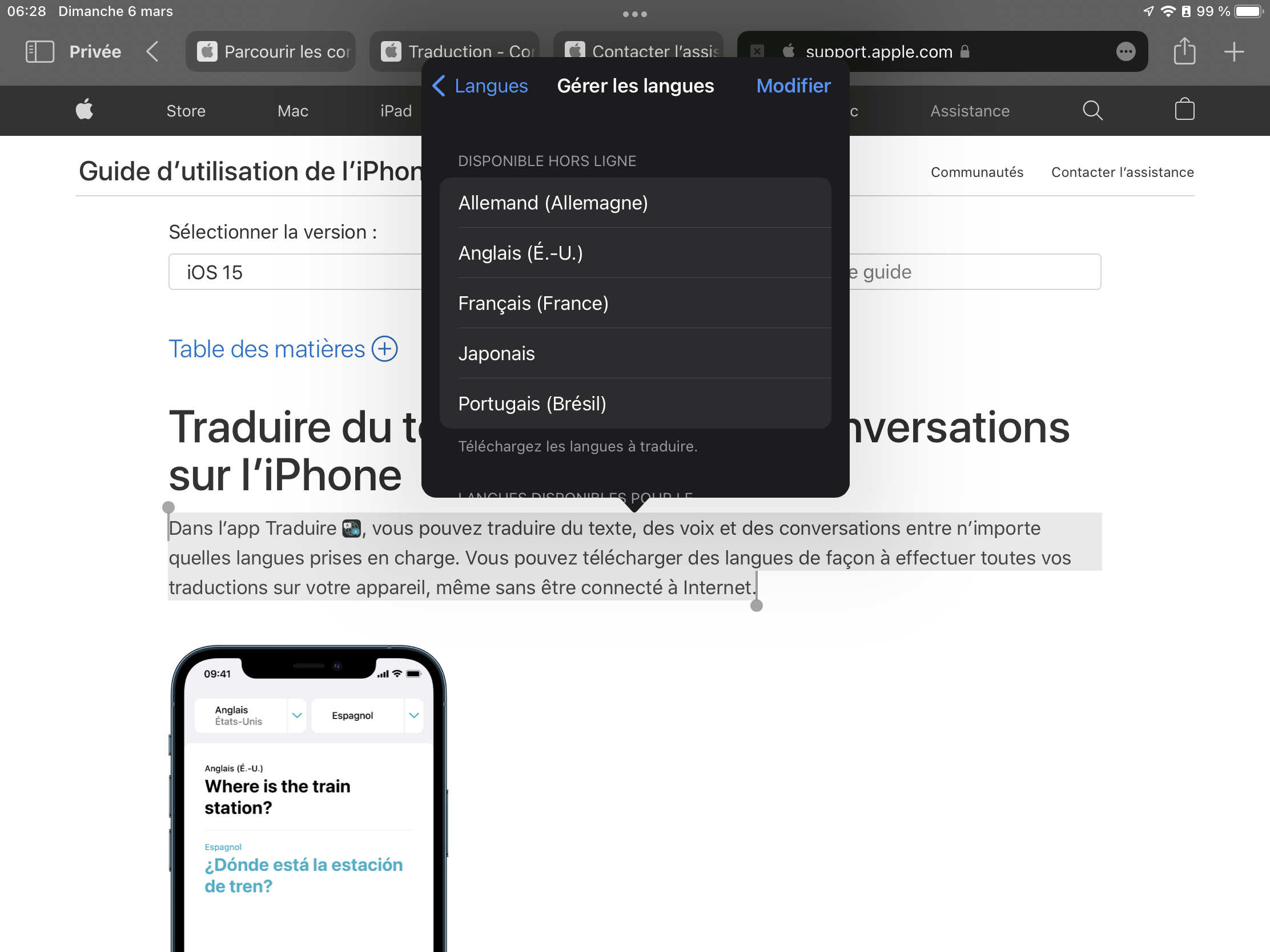 Traducteur Anglais Français ne fonctionne pas sur iPhone