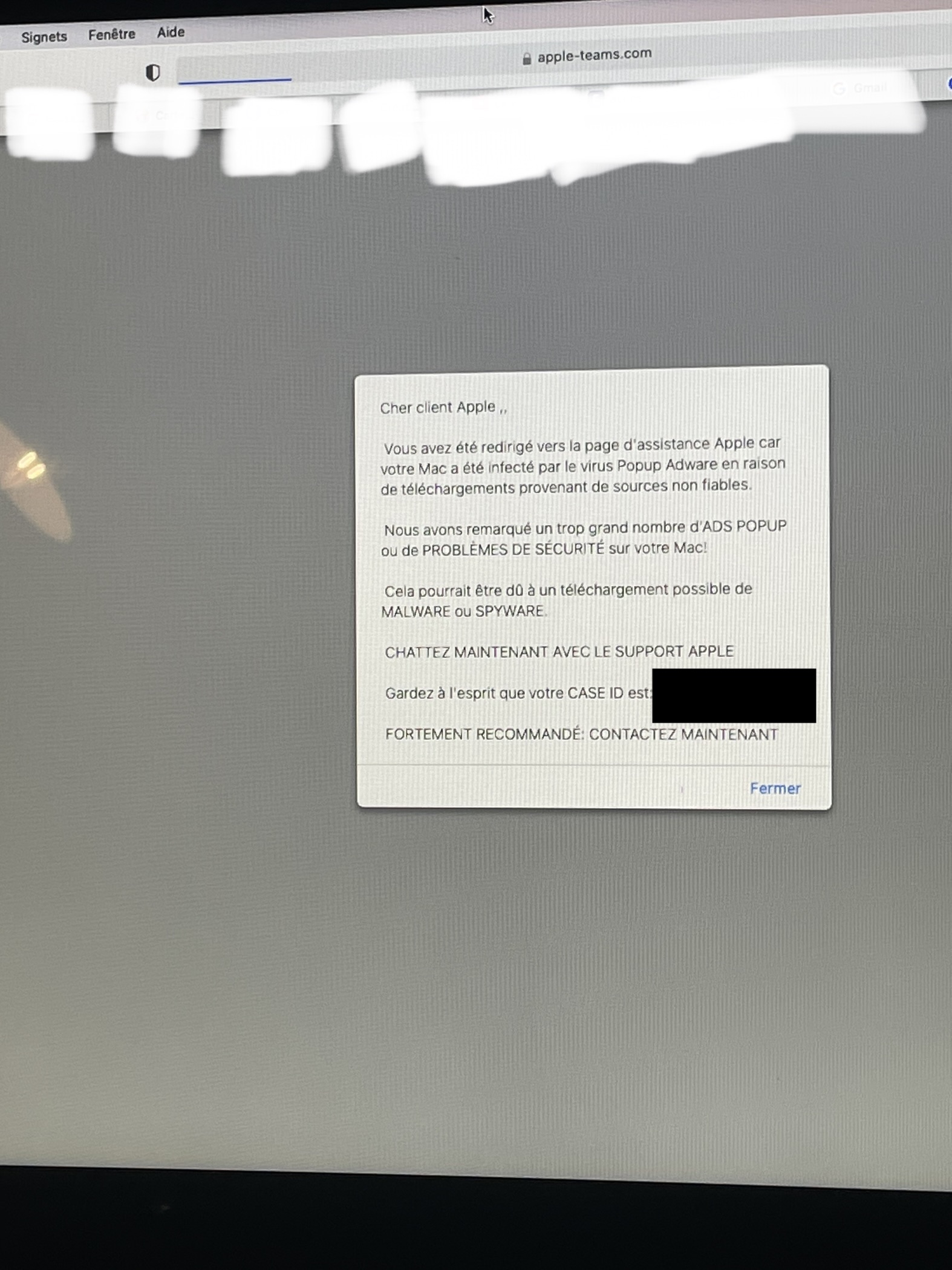 Bonjour, suite à une recherche sur safari, une fenêtre c’est ouvertes ou je ne sais quoi, et c’est affiché le message (regarder photos ci dessous). J’espère avoir une réponse, je vous remercie