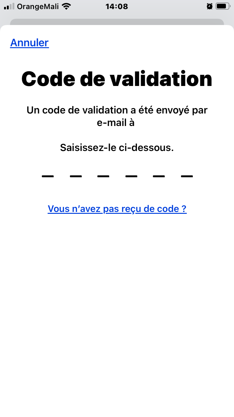 Je n’ai pas reçu le code j’ai tenté plusieurs fois