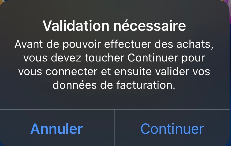 Si oui, qu'est-ce qu'il se passe après, est-ce que tu as la possibilité de connecter ton identifiant Apple et vérifier tes informations de facturation ?