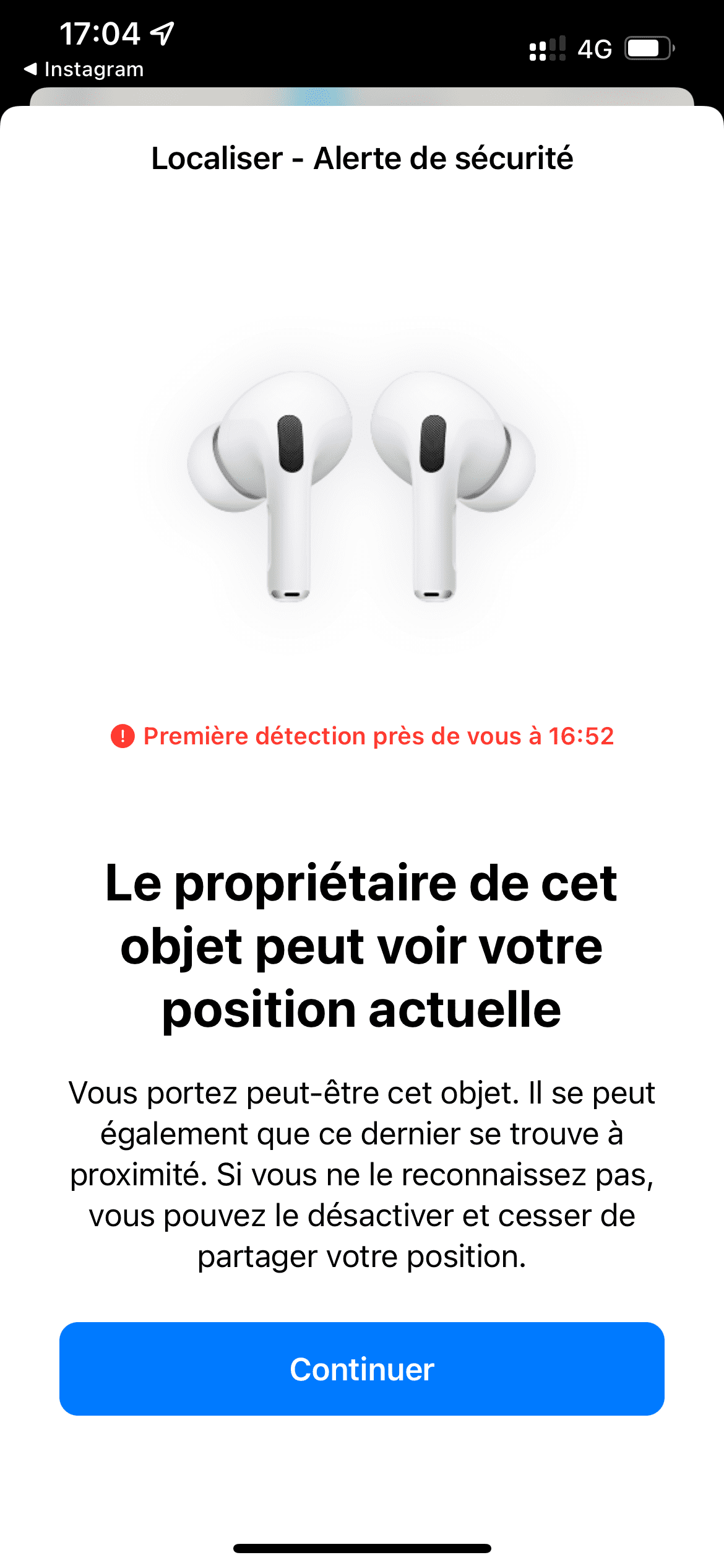 Je dispose d'AirPods Pro et j'ai tous les jours une notification m'informant que des AirPods Pro se déplace avec moi depuis un moment mais c'est bien les miens...