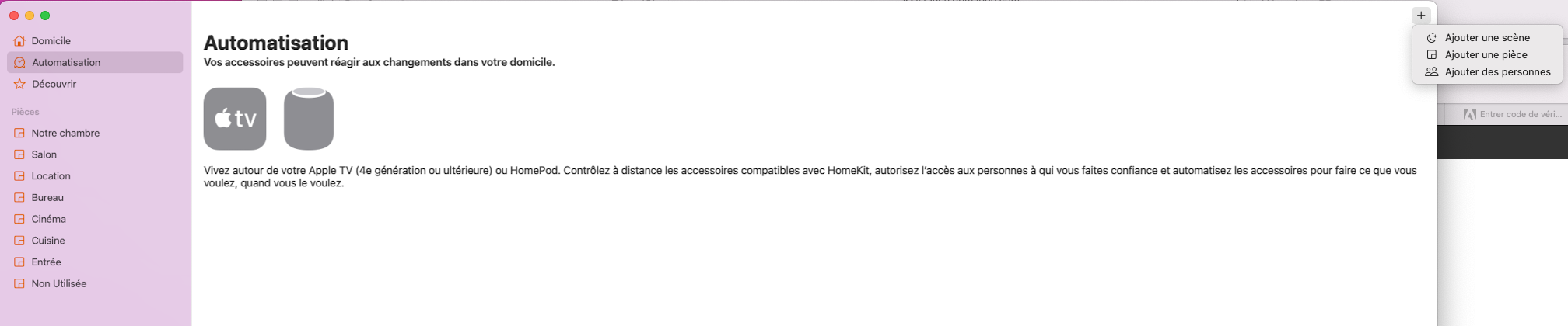 je viens d'installer les toutes dernières mise à jour sur mes appareils mac ipad iPhone et apple TV (dernier modele fourni par free) et je ne vois pas comment créer une automatisation.