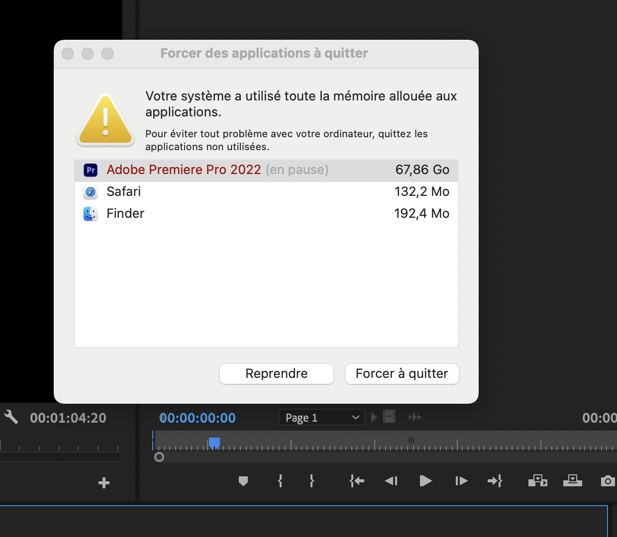 Est assez explicite en soi Adobe Première Pro veux plus de mémoire unifier que les 16Go disponible sur ton Mac😪