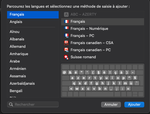 J'ai du faire une installation de catalina, depuis je n'arrive plus à avoir mon clavier AZERTY "normal".