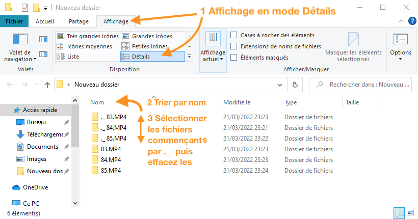 Voici une capture d'écran de mon problème, j'ai mis des vidéos de mon mac sur un disque dur externe et lorsque j'ai regardé les vidéos sur un ordinateur sous windows, je me suis aperçu que toutes mes vidéos avec un fichier du même nom mais avec le préfix "._" . Comment puis-je empecher macos de créer ces fichiers (invisibles sur mac) ?