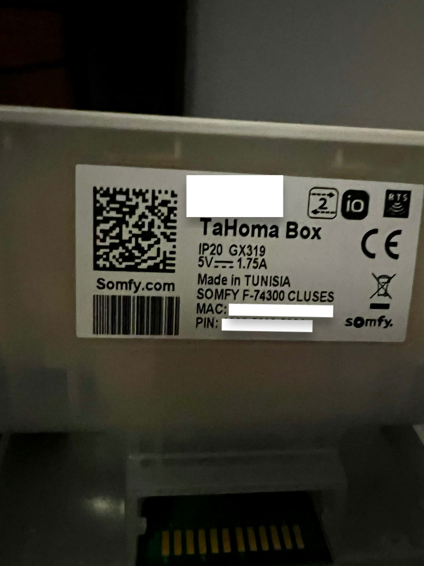 Si Somfy n'est pas en mesure de vous renseigner le code HomeKit de votre box TaHoma il n'y aura aucun moyen de le connaitre.