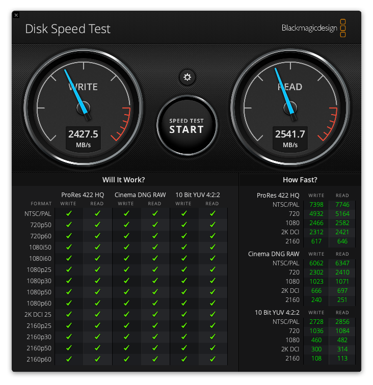 Quand je fais un test de vitesse du SSD Interne du mac, aucun soucis de vitesse.