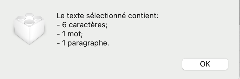 set theResult to theResult & numChars & " caractère;" & return & "- "