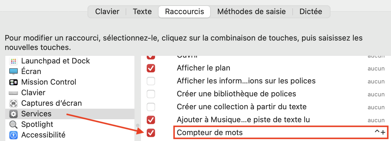 Comptage mots dans TextEdit sur Mac