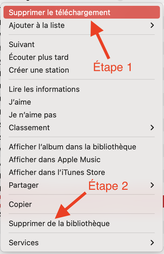Si tu procède seulement a l'étape 2 le(s) morceau(x) (fichiers) seront conserver (sans le afficher dans Musique) sur ton disque et prendront de la place inutilement