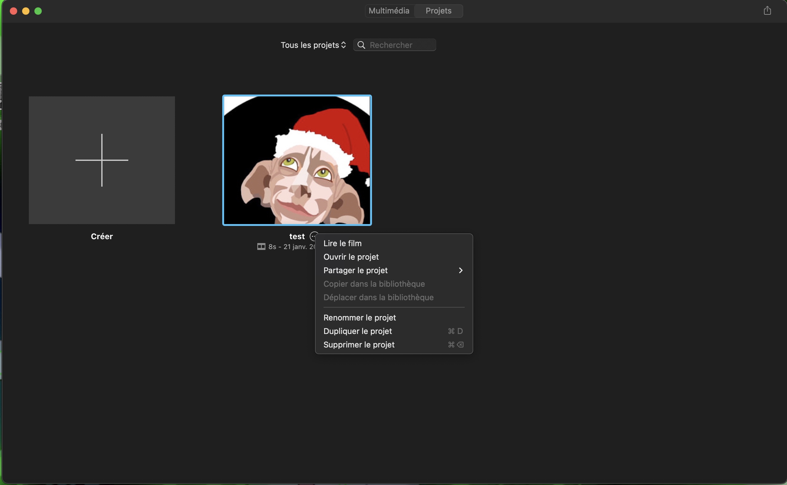 Si ton projet iMovie se trouve toujours dans la liste de tes projets dans l'app iMovie de ton Mac, tu peux tout à fait le modifier. Pour cela, il te suffit d'ouvrir le projet dans l'app iMovie comme le montre la photo ci-dessous.