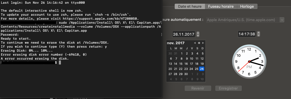 Le problème vient de la date, car El Captain n'est plus pris en charge à partir de juillet 2018. La solution est de changer la date depuis le terminal. Pour accéder au terminal et changer la date: