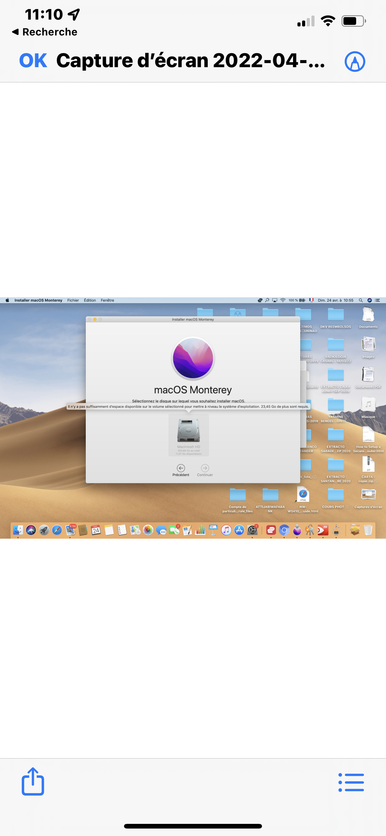 Bonjour, j’ai essayé d’installer Monterey. Je reçois le message qu’il n’y avait pas assez d’espace.