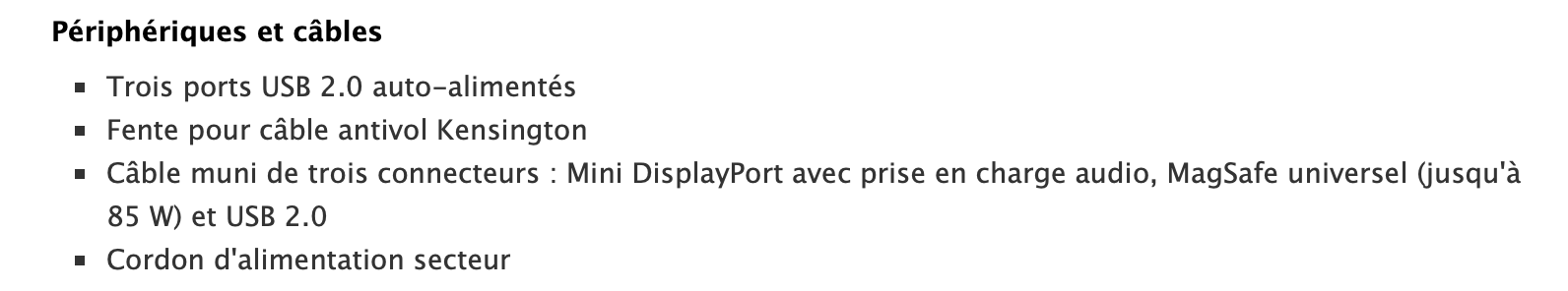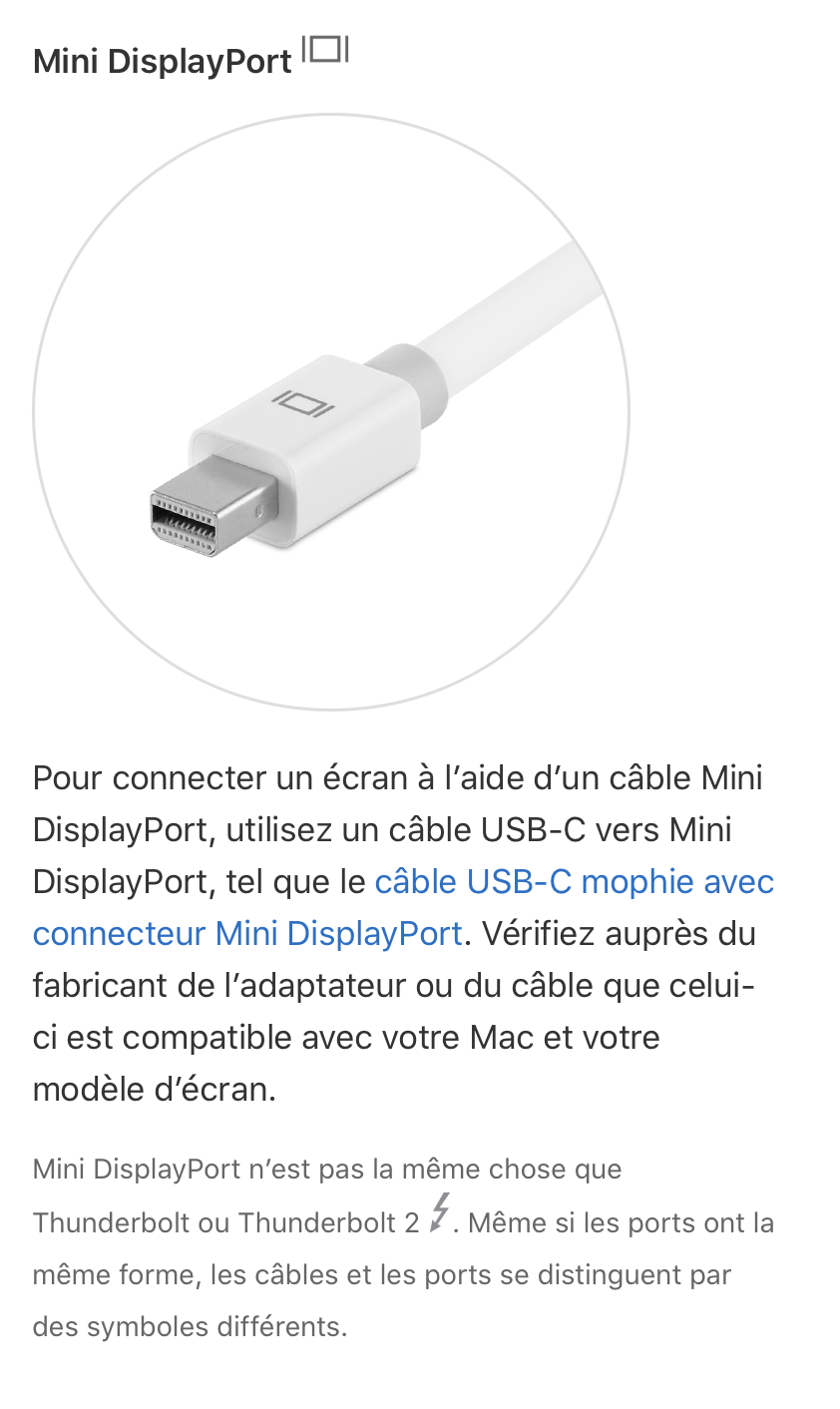 J'ai branché l'écran Apple LED Cinema Display sur secteur et le cable Apple LED Cinema Display dans l'adaptateur Thunderbolt 3 (USB-C) vers Thunderbolt 2.