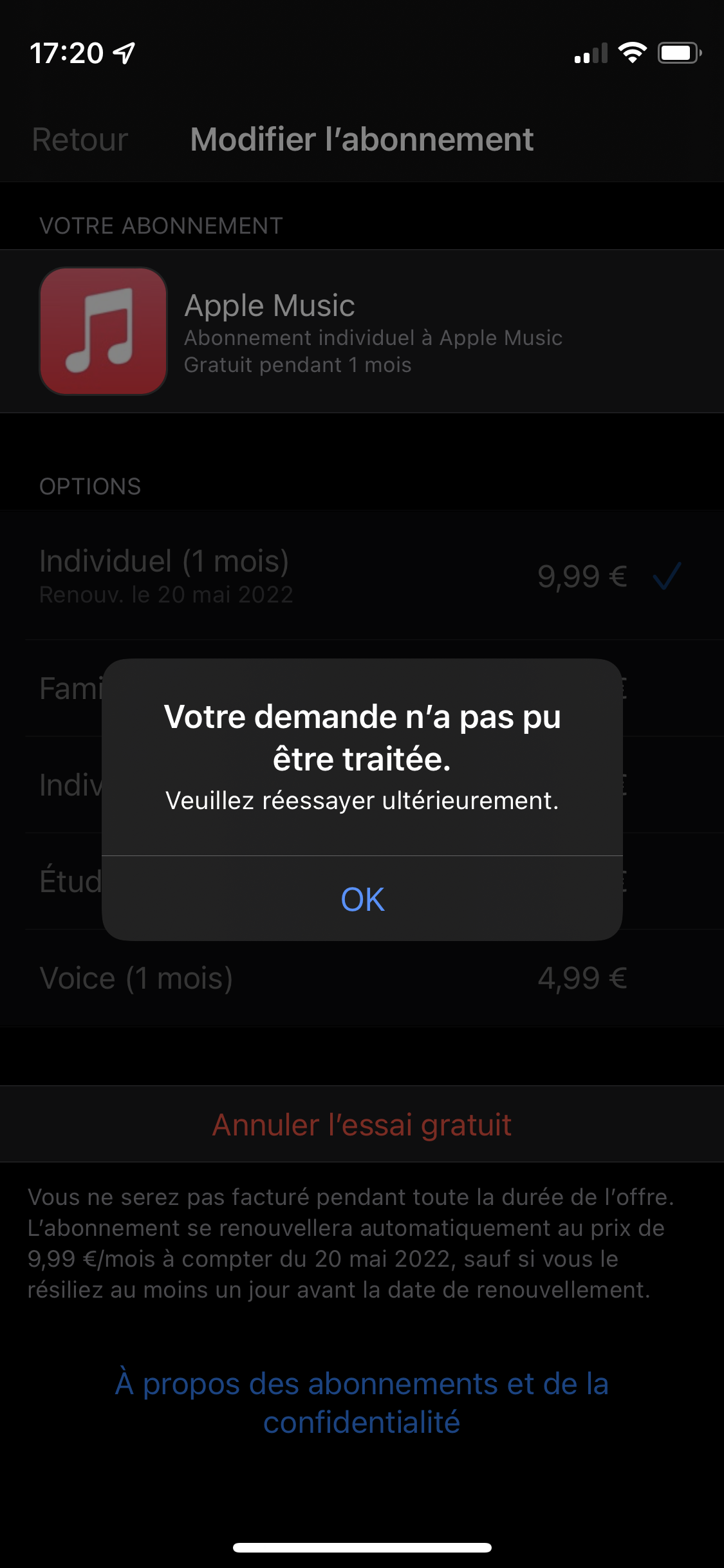 Bonjour je n’arrive pas à résilier l’essai gratuit music