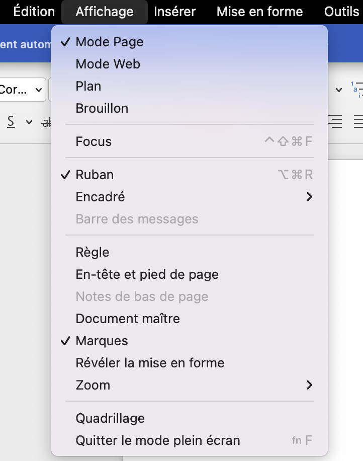 Comme vous pouvez le voir sur le screen, il m'est impossible de cliquer sur "Notes de bas de page". Quelqu'un peut m'aider à régler ce problème ?