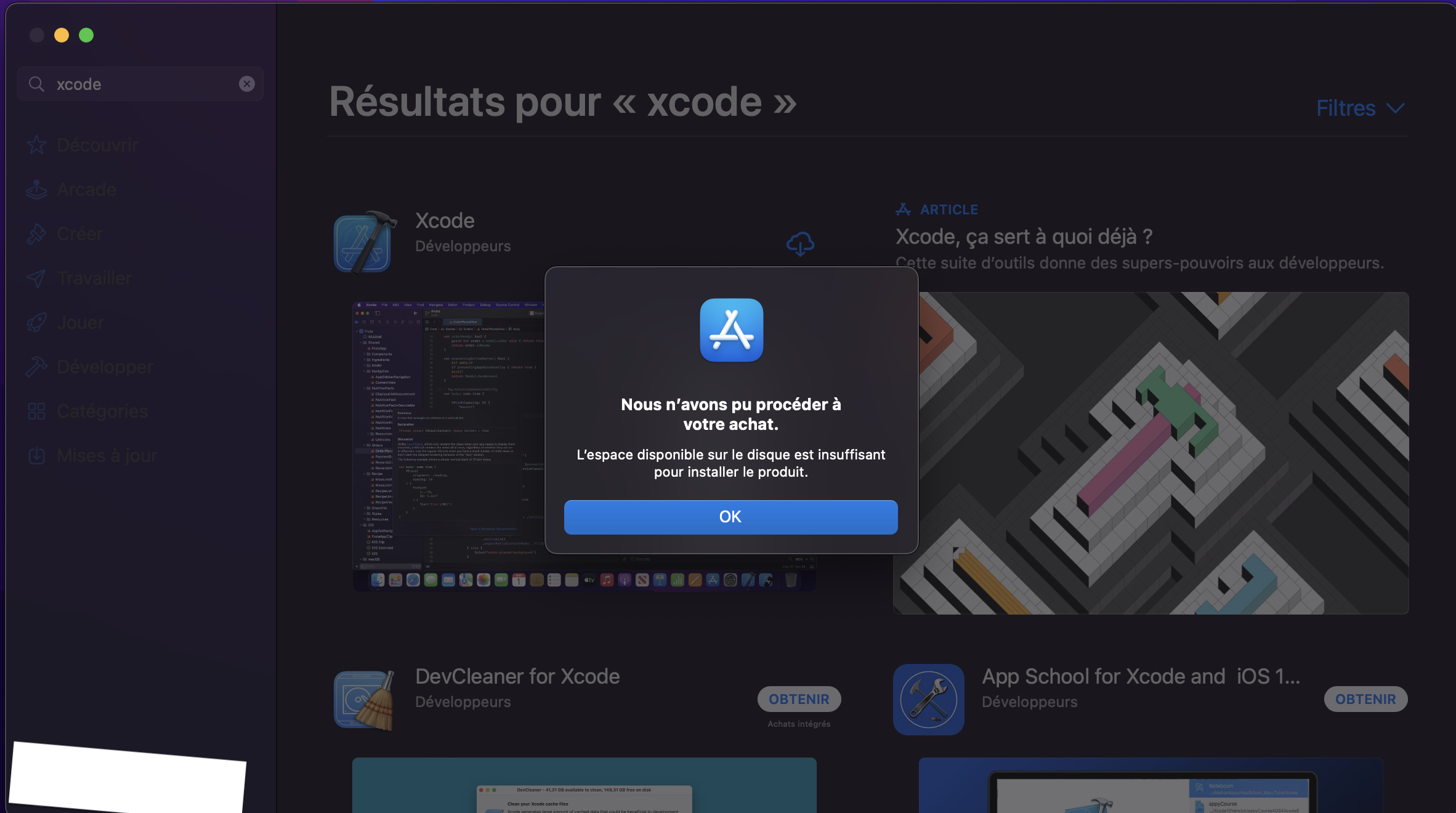 Bonjour il m'est impossible de télécharger xCode sur l'AppStore car ce message apparait :