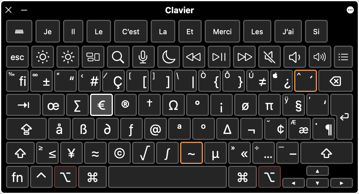 Je n'arrive pas à faire le symbole euro sur le clavier de mon mac. J'ai la configuration "Suisse romand"