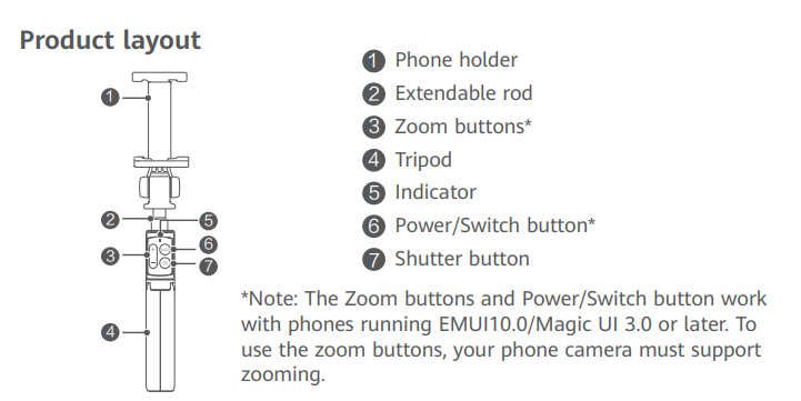 Utilisation d'une perche à selfie Huawei CF15 Pro Bluetooth