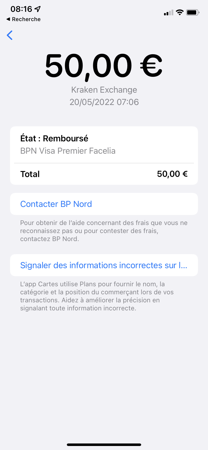 Bonjour, je ne comprends pas pourquoi sur mon application Apple Pay, c'est notifié remboursé et que l’argent n’est pas venu sur mon compte puis je être aidé ? notifié