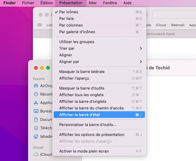 Zoom dans la fenêtre Dossier sur Mac