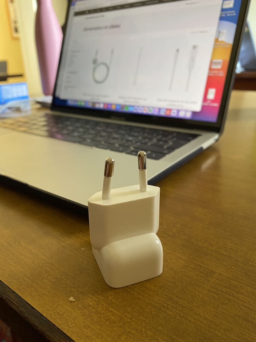 Une des tiges de la prise du chargeur est de travers et je n'arrive pas à bien le remettre....