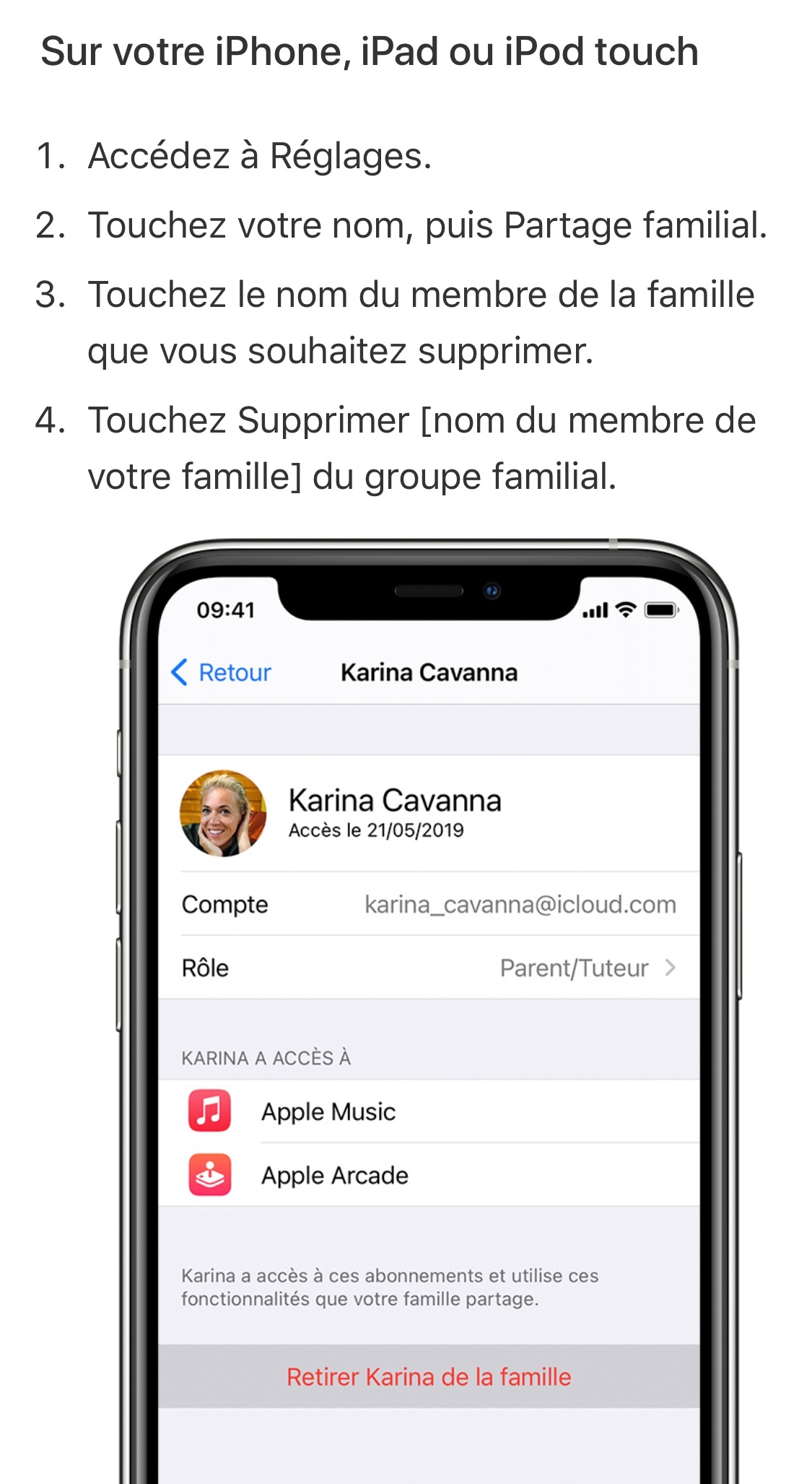 Supprimer un membre du partage familial Apple
