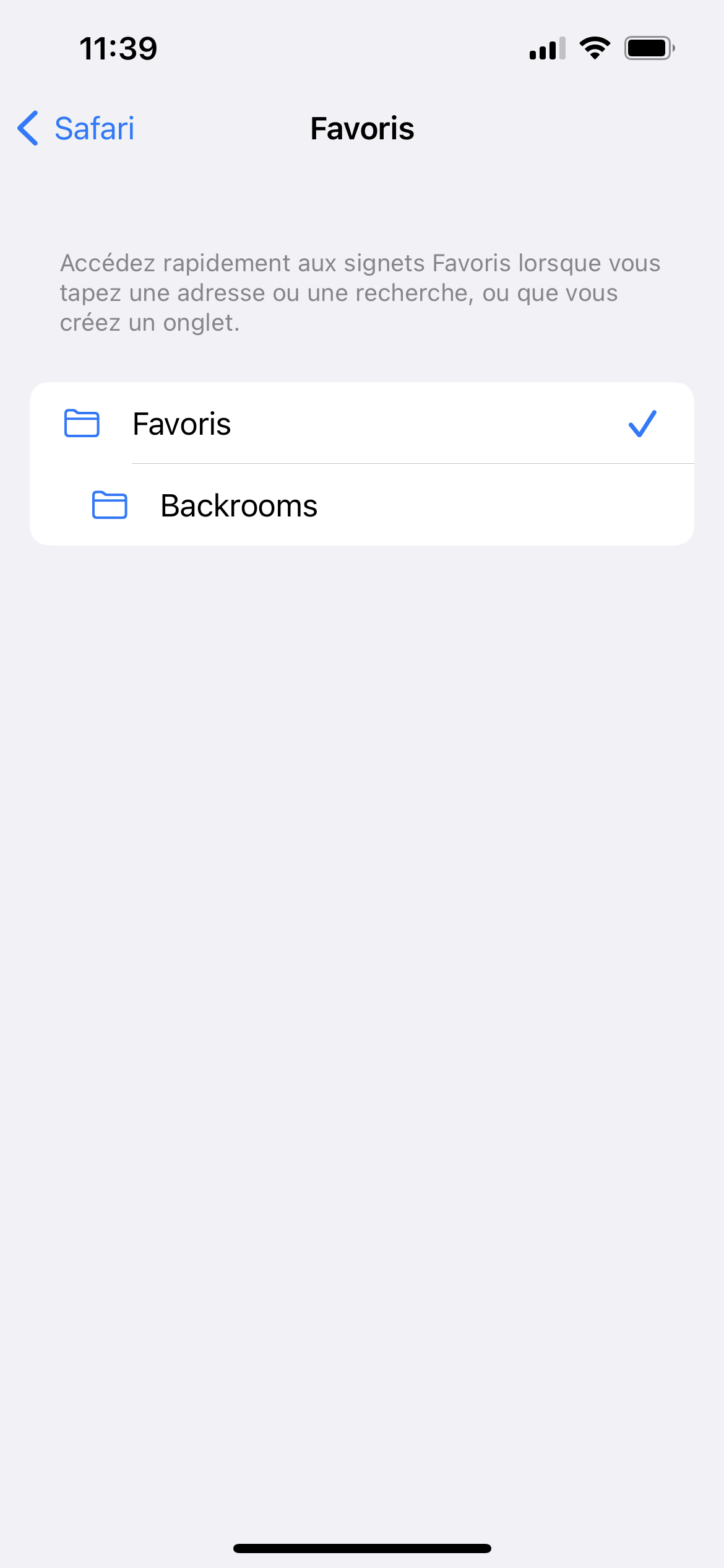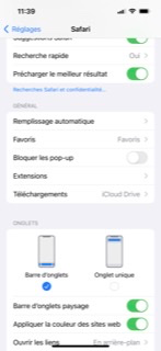 Le problème c'est que quand je vais dans réglages > Safari > Général l'option "afficher barre des favoris" n'apparaît pas.