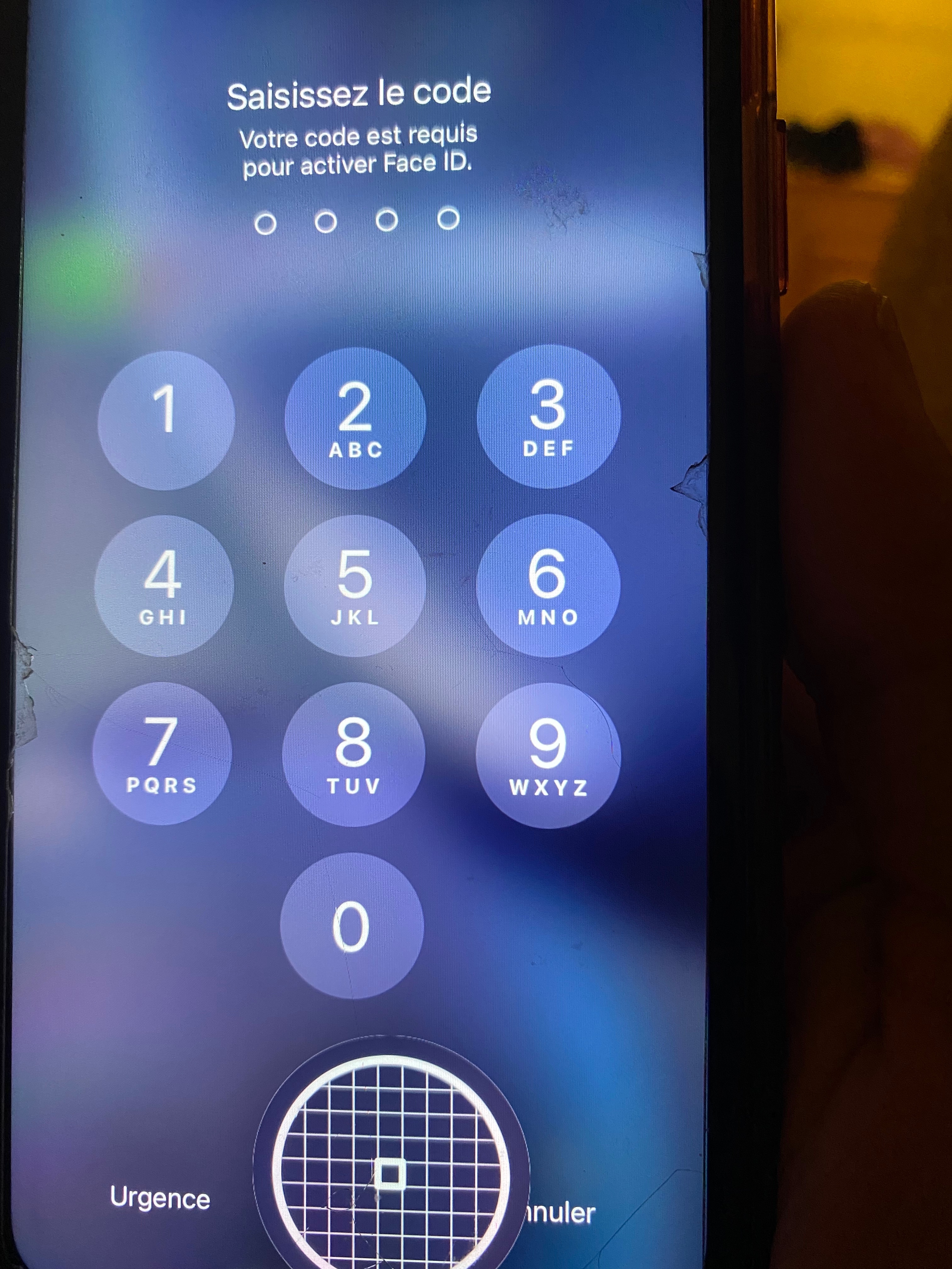 Bonjour, sur l'iPhone à ma femme je ne sais pas a quoi ma fille a touché, mais plus moyen de déverrouiller l'iPhone ! quand je glisse mon doigt sur l'écran il y a un rond quadrillé qui se positionne sur l'écran mais rien ne se passe ! Le pire c’est que je ne peux pas le déverrouiller pour pour accéder aux réglages car il demande le code pour la réactivation du Face ID . Je vous mets une photo en pièce jointe. Merci d’avance