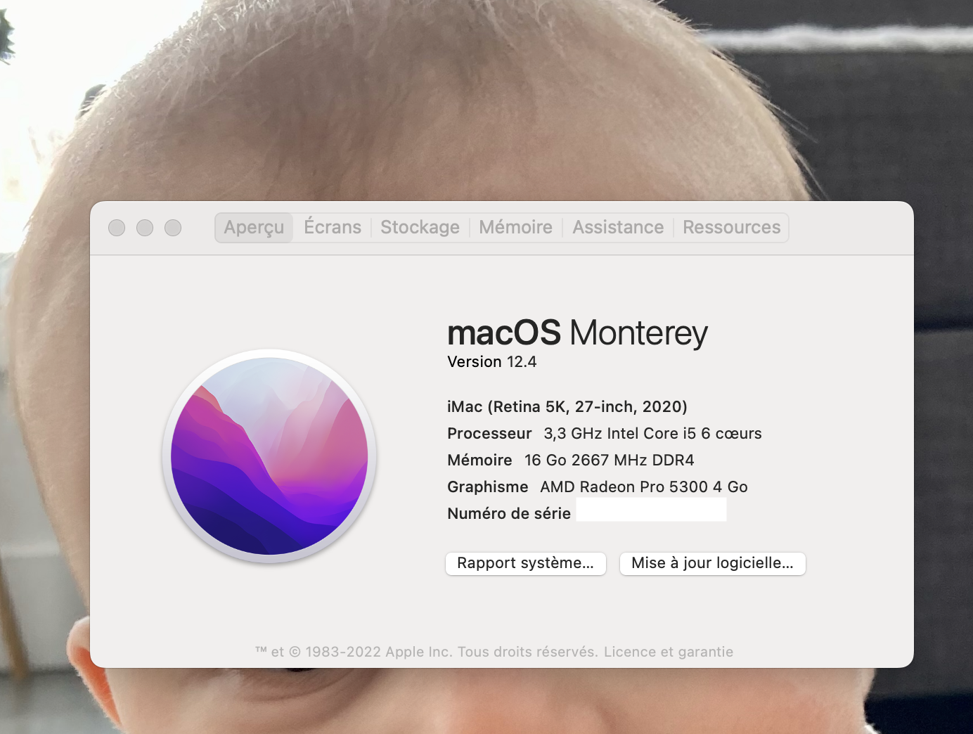 Pourriez vous poster une capture d'écran de : menu > A propos de ce Mac s'il vous plaît ?