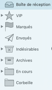 2 - Sur cette copie d'écran (tronquée en bas pour des raisons de discrétion pro), on voit la barre latérale de Mail :