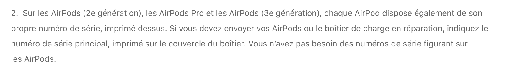 Numéro de série AirPods ne correspond pas à la facture