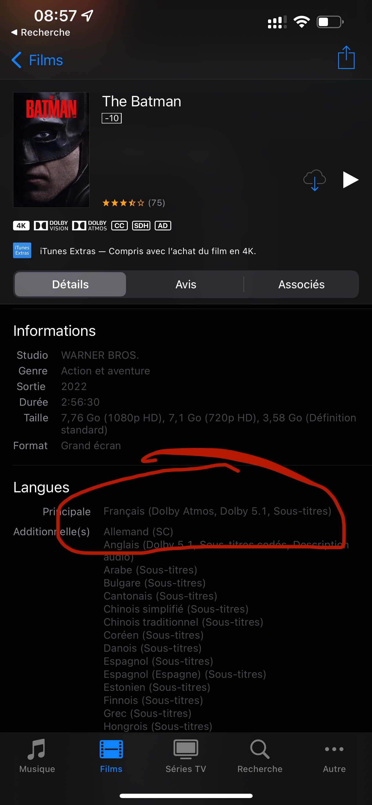 J'ai acheté hier via l'itunes store le film "The Batman".