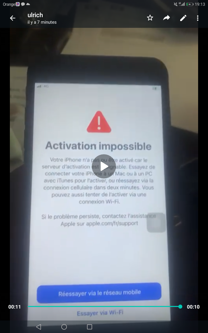 Mon iPhone 7+était déprogrammer et maintenant qu'il est programmé on dit que l'activation de l'appareil est impossible