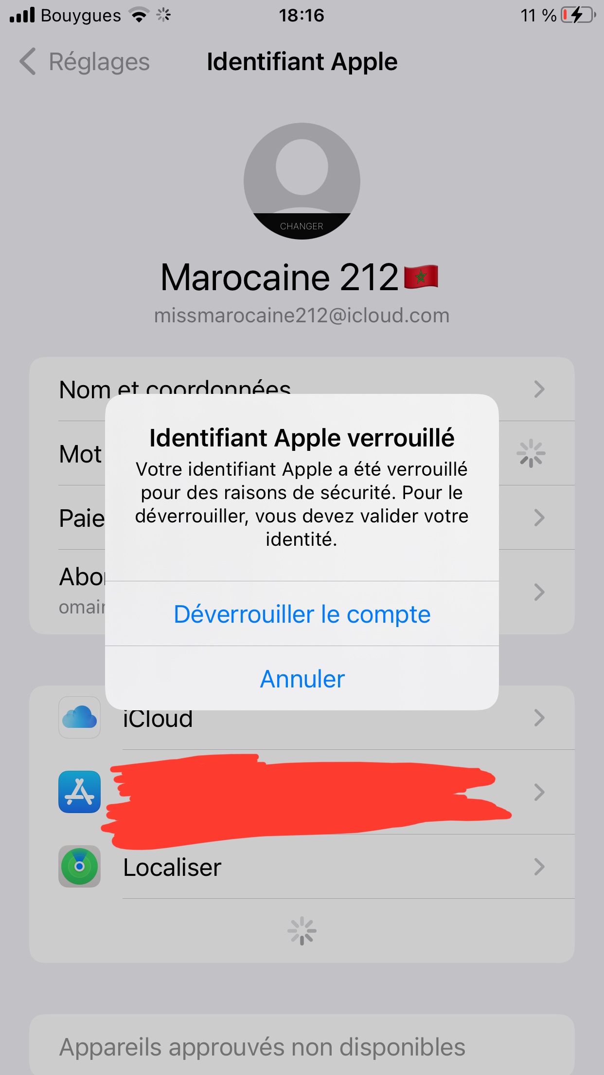 Compte iCloud verrouillé en raison de piratage