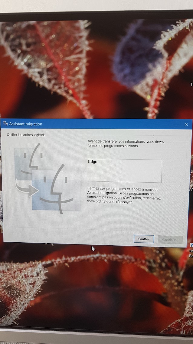 Je ne parviens pas à utiliser la migration du PC vers le Mac le pc me demande de fermer edge et je tiens toujours ce message