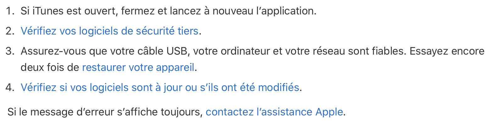 Vous trouverez la solution ici : Messages d’erreur lors de la mise à jour ou de la restauration d’iOS - Assistance Apple (FR)