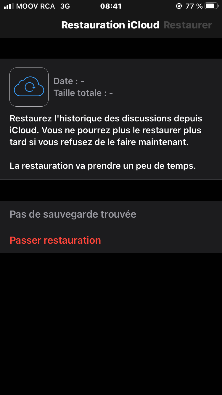 Je ne peux restaurer mes discussions WhatsApp parce que iCloud dit qu’il y’a aucun sauvegarde que faire