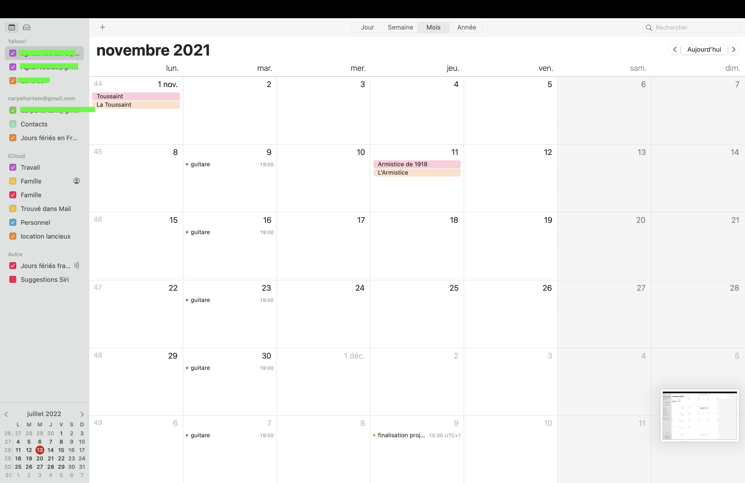 Dans un premier temps, les fournisseurs de calendrier, sont gmail et yahoo et iCloud. Dans un Yahoo, on voit une adresse gmail, laissant penser à un partage de partage. Il y a déjà un problème d'infrastructures des vos agendas.