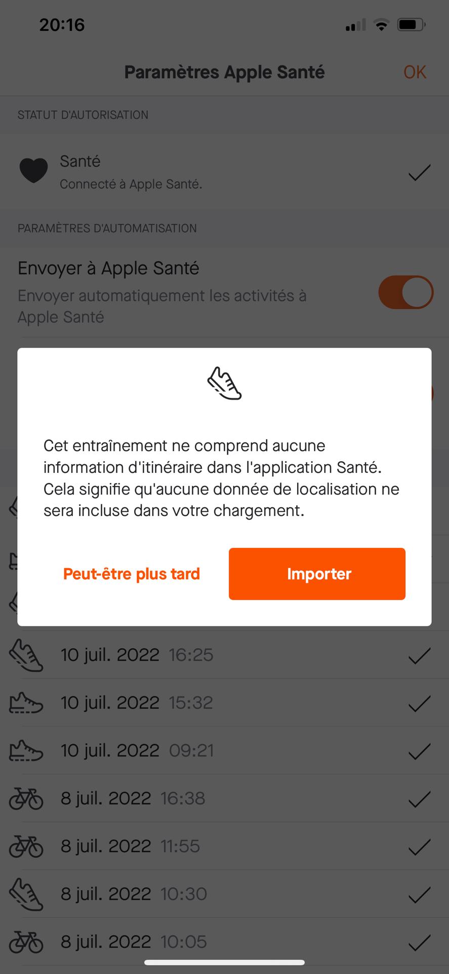 Il m'arrive parfois que lors de mon importation d'activé de ma montre Apple sur Strava, je reçois un message expliquant que l'entrainement ne comprend pas d'information d'itinéraire.