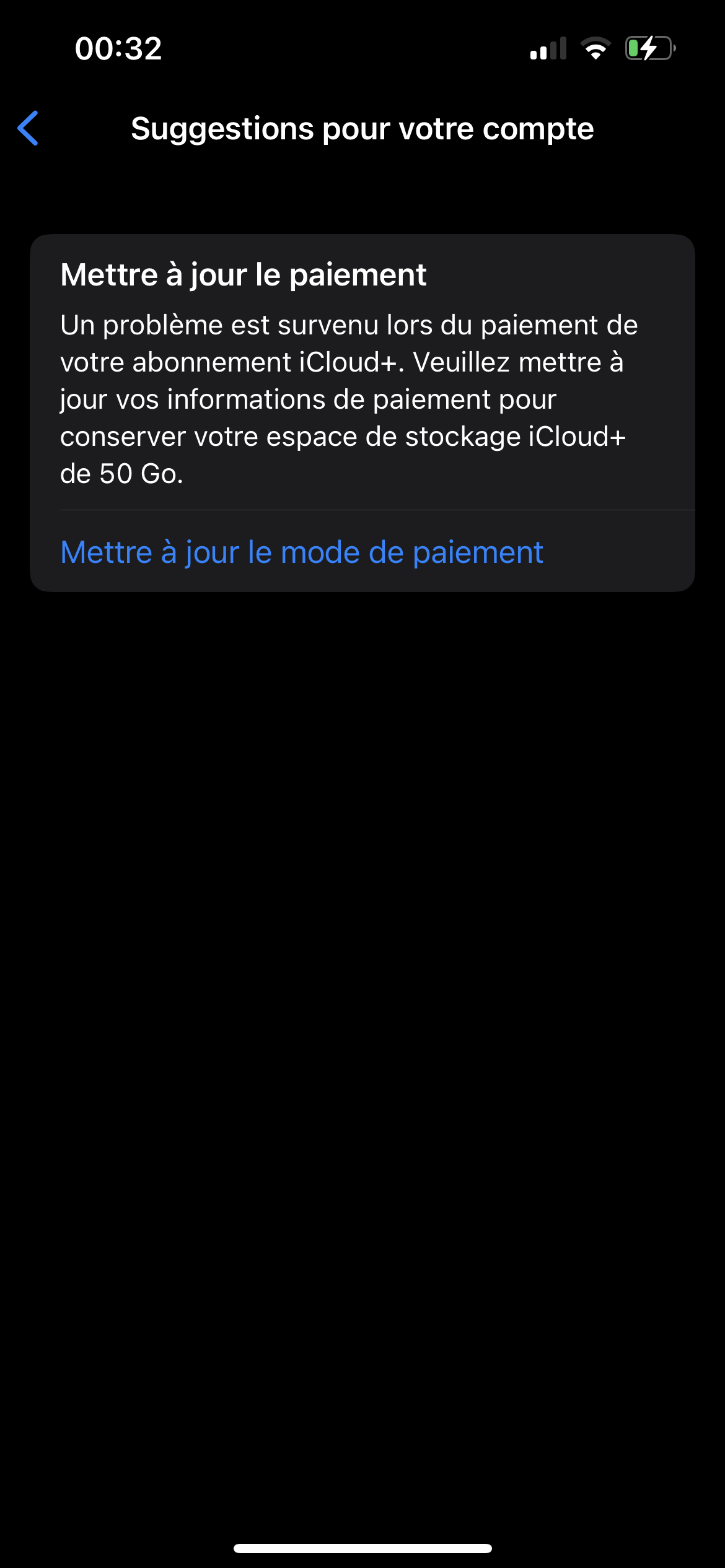 Il me demande mettre a jour le paiement mais cela ne fonctionne pas