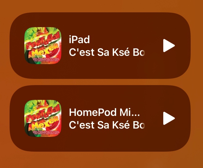 Cependant, elle est également présente sur mon HomePod Mini, c’est-à-dire que la dernière chanson est affichée dans le centre de contrôle de l’ensemble de mes appareils comme étant en pause sur le-dit HomePod Mini. En gros, il me suffirait d’appuyer sur la partie tactile de mon HomePod Mini pour reprendre la lecture de la dernière musique, qui est censée avoir basculée sur mon iPad, pile au moment où je l’avais basculée du HomePod vers mon iPad.