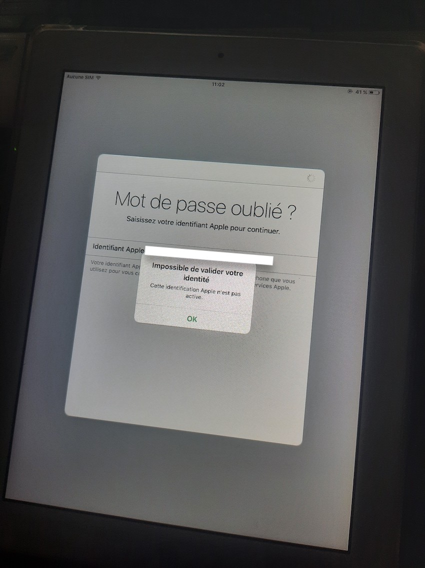 Bonsoir , j'ai acheter deux ipad 2 pour mes enfants pour qu'ils jouent aux jeux , j'ai donc créé un compte icloud , j'ai contacté que la version du IOS ne me permettait pas de télécharger des jeux , j'ai donc installer iTunes 12.6.3 , j'avais connecter le compte la première fois c'est passé puis j'ai voulu installer une application ils m'ont demander mon mot de passe à nouveau et c'est la que tout a commencer , le message affiche " cet identifiant Apple n'est pas actif " j'essaie de le déconnecter sans succès, je ne sais pas quoi faire